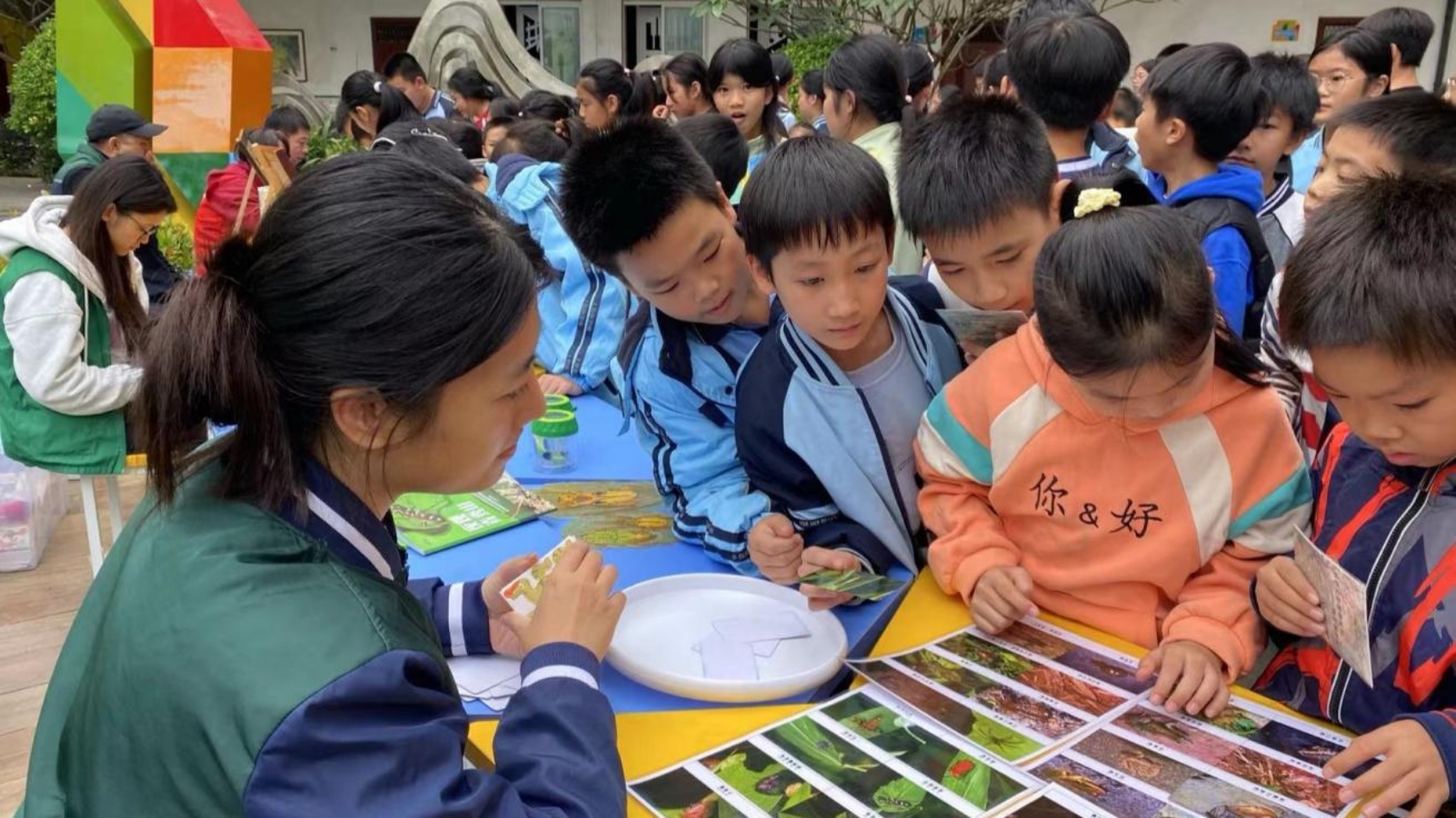 ????课堂上,科普志愿者将原本抽象的植物生长规律、复杂的生态系统奥秘,转化为一个个妙趣横生的小故事,牢牢吸引着同学们专注的目光,让知识讲解不再枯燥。课堂外,同学们沉浸式打卡科普小站,趣味探索自然奥秘。在 “千年的对话 —— 苏铁奇观”小站,聆听水培苏铁诉说的远古故事;在“压花中定格美丽”小站,亲手将鲜花制成永久保存的压花工艺品?!袄蓟ǖ蔫病毙≌?,观赏多样兰花、参与趣味拼图、收获植物书签;在“多彩的昆虫世界”小站,通过树脂标本观察昆虫细节,化身“昆虫小侦探”在拼图中探寻生存智慧;在“闻香识植物”小站,嗅闻薄荷、玫瑰等芳香植物,激发探索欲;在“种子的传播””小站,借助特色种子展品与互动游戏,解锁种子旅行的奇妙过程。孩子们在触摸、观察、嗅闻中与自然深度对话,生态文明的种子悄然扎根童心,续写人与自然和谐共生的美好约定。