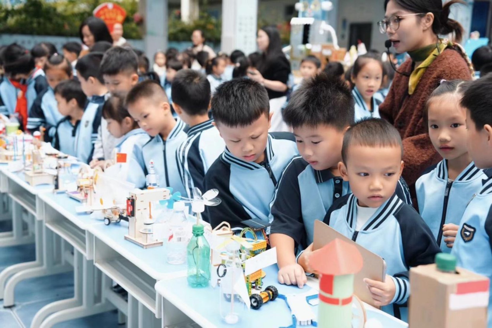 活动以别开生面的科技时装秀开场,打破传统模式,迅速激活现场氛围。随后,悬挂国旗的航模飞机在空中翱翔,搭配精彩纷呈的科普秀,前者展现精准操控与爱国情怀,后者以趣味实验、科学演示将抽象知识具象化,引来师生阵阵掌声,成功将现场气氛推向高潮。在手工制造模型展区,集中展示了学生自主完成的科技作品,展品内容丰富、形式多样,既有对传统技术的巧妙改进,也包含对前沿科技的积极探索,充分彰显学生的综合素养与参与热情。现场,学生还向观摩的老师、嘉宾详细讲解创作理念与制作过程,直观体现出活跃的创新思维和扎实的动手能力。